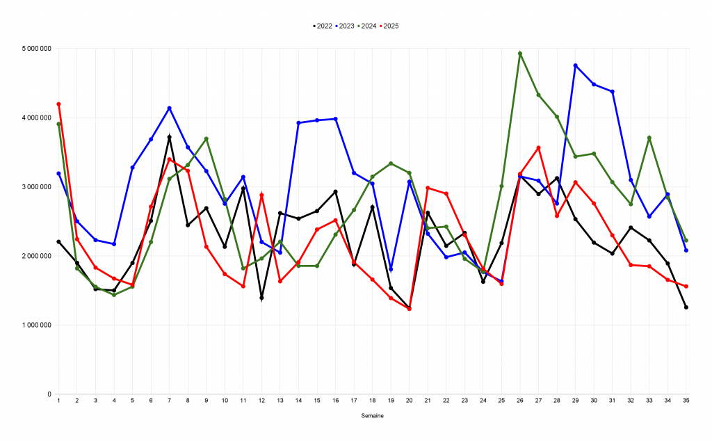 Entrées cumulées du 27 août au 2 septembre 2025 :