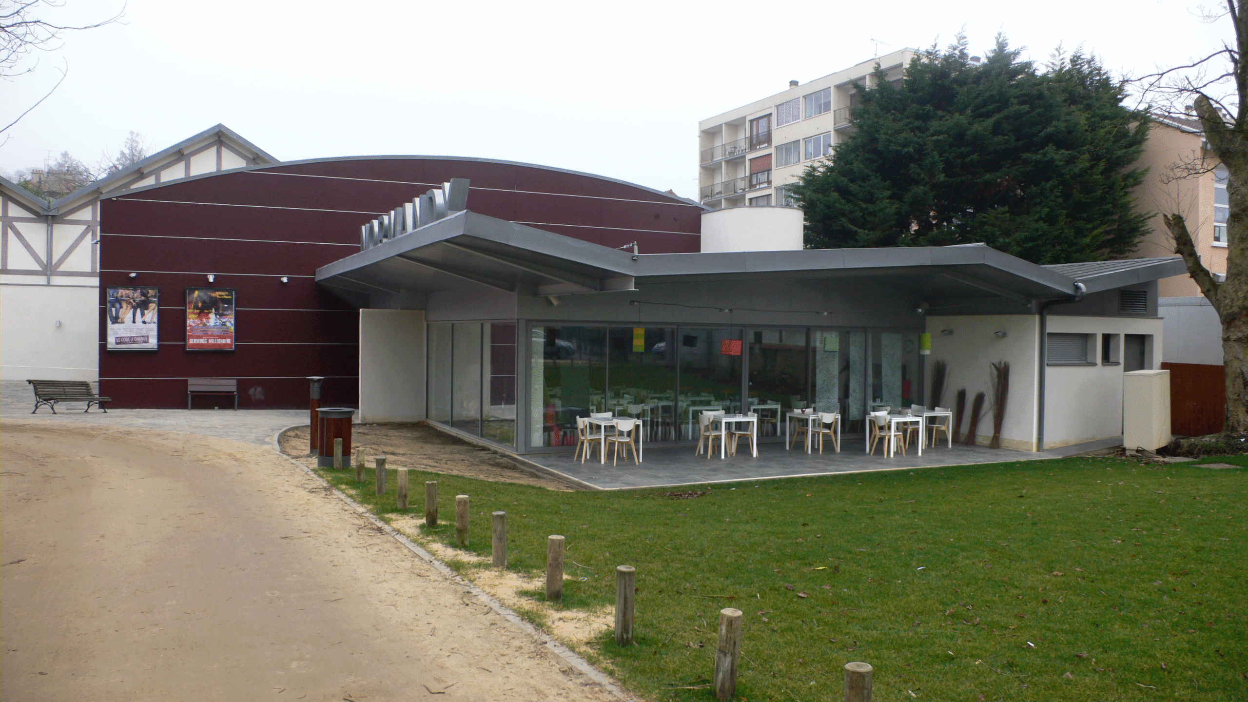 Pour la petite histoire, le Normandy a ouvert ses portes en 1939, comptant à l’époque une salle unique dotée de 450 fauteuils et d’une large scène. Déjà érigé au cœur d’un parc bordant l’avenue de la République, le site arbore alors une façade caractéristique à colombages. Les années passent et l’établissement se taille petit à petit une belle réputation grâce à des présentations de gala de films avec équipe ; l’un des moments marquants reste sans nul doute l’avant-première mondiale du Corniaud, le 16 mars 1965 en présence du casting. Le cinéma est alors détenu par M. et Mme Claude François, avant de passer dans le giron de la municipalité à la fin des années 1970, qui en délègue alors la gestion à la société Les Vrais Instants de l’Image en 2005. Trois ans plus tard, Le Normandy prend une autre dimension avec l’ouverture d’une deuxième salle de 104 places et la rénovation de la grande salle, dont la capacité a été réduite à 210 sièges, complétée par l’agencement d’un espace café-lunch. Il présente un habillage plus moderne, avec un hall vitré et une enseigne épurée, conçu par l’architecte Gilbert Long.